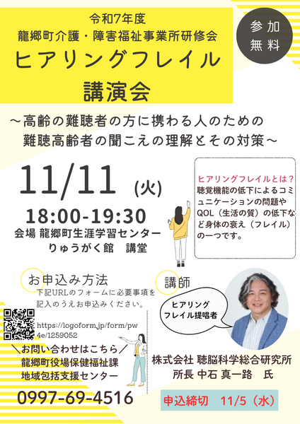 【11月11日(火)】令和7年度龍郷町介護・障害福祉事業所研修会「ヒアリングフレイル講演会」のご案内